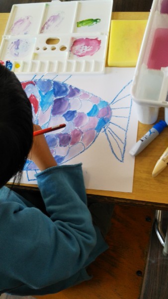 絵の具を丁寧に塗って、素敵な作品を仕上げています。