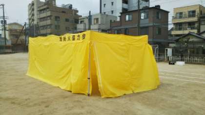 避難訓練の後、2年生は、煙体験を行いました。煙を吸わずに避難するように姿勢を低くして、口にハンカチ等をあてて、避難しました。