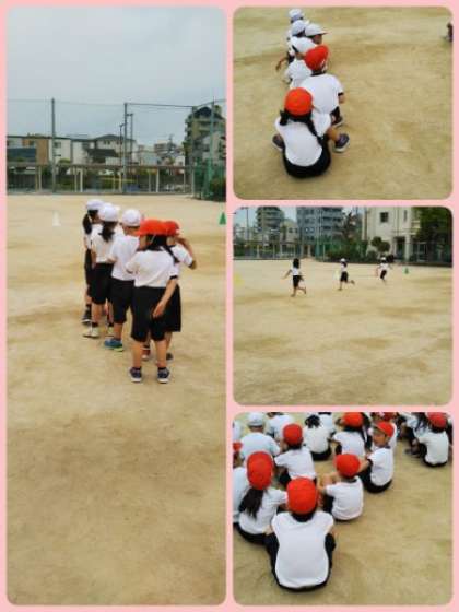 体育に時間に。「どうぶつかけっこ」をしました。先生の話をしっかり聞いて、集合整列も頑張りました。動物になりきって、みんなで楽しく「かけっこあそび」ができました。
