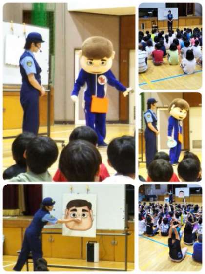 旭警察の方が来られ、1・2・3年生対象に防犯教室を行いました。