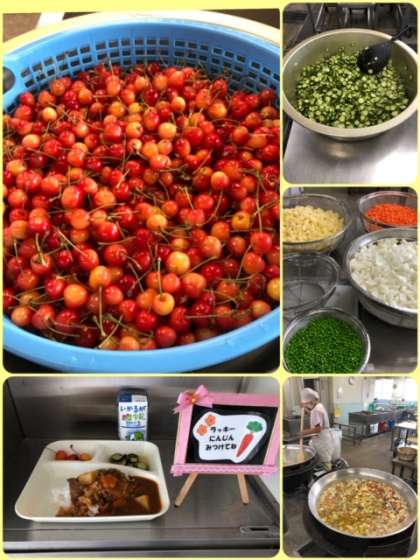 さくらんぼは、初夏の訪れを感じさせるくだものです。給食では、一年に一回、生(なま)のさくらんぼが登場します。