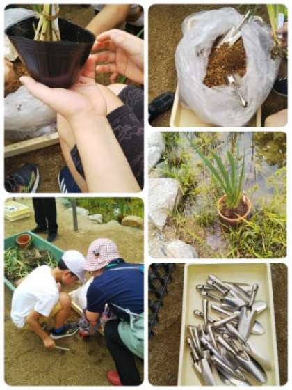昨日、委員会活動がありました。運動委員会は、体育倉庫の掃除やボールの空気入れをしていました。また、栽培委員会は、区役所の方々と「花ショウブ」の株分けを行いました。これから水やりも頑張ってくれます。
