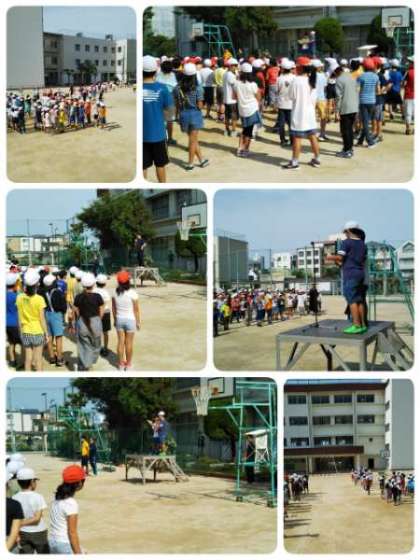 児童朝会では、保健委員会の清潔調べの表彰や熱中症の予防についての話がありました。