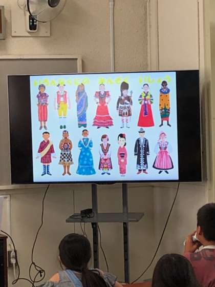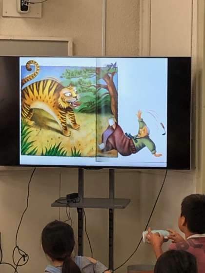 ソンセンニムと韓国・朝鮮の昔話「小豆がゆばあさんとトラ」や挨拶、民族衣装などについて学びました。