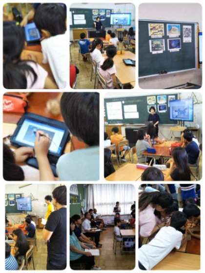 昨日、本校で研究授業・研究討議会を行いました。研究主題を「ICTを活用した授業の実践」とし、5年生図画工作科「名画名作にとびこもう」の単元で行いました。