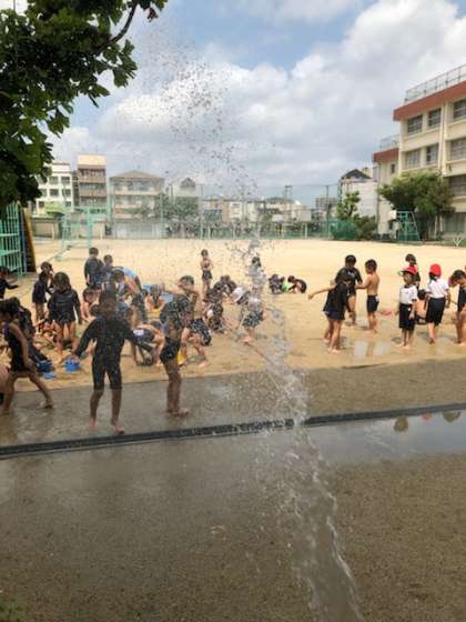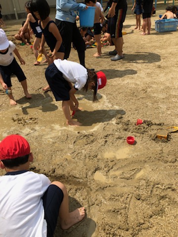 1年生が生活科の学習で「泥遊び」をしました。