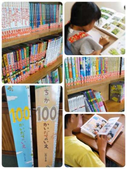夏休みも図書室を開放しています。おもしろい本、楽しい本、図鑑などもたくさんあります。自由研究など、調べることもできます。