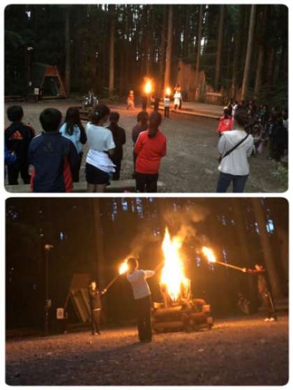 キャンプファイヤーも終わり、今は、お風呂に入っています。