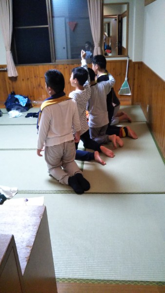 日記、歯みがきのあと、就寝の準備をしました。明日もたくさんのプログラムがあります。ゆっくり寝て、疲れをとってください。