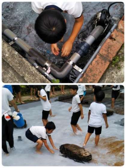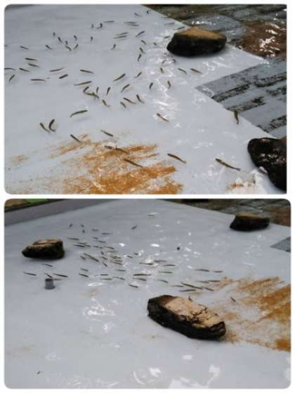 魚が悠々と泳いでいます。クラス対抗でつかまえた数を競います。