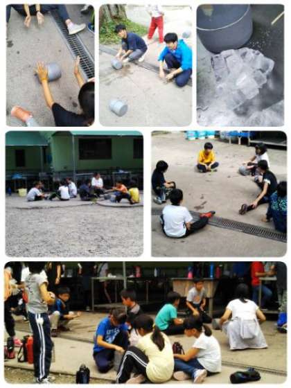 アサヒロッジ特製のシャーベット作り製造器に材料と氷と塩を入れて、蓋をします。