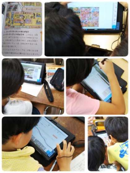 3年生の社会科の授業の様子です。「スーパーマーケット」や「コンビニエンスストア」等の特徴などについて、学習しています。