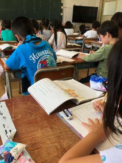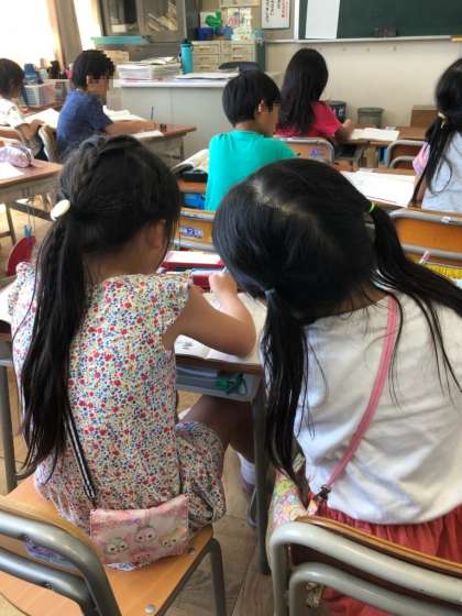 隣の子と相談したり、本を読み返したりして、くまのこの気持ちを考えました。友だちの発表を聞いてうなずく子もいて、友だちの発表に耳を傾けていました。