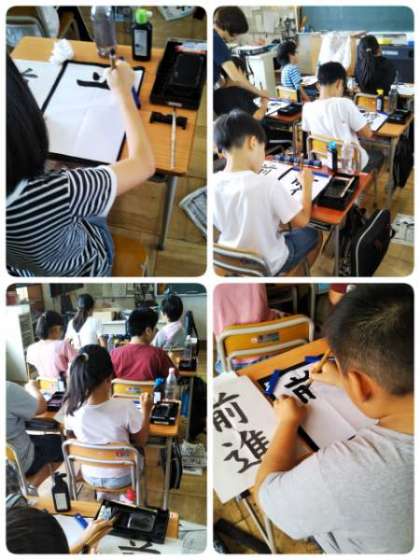 5年生の書写の時間です。「前進」の文字を落ち着いて丁寧に書く練習をしました。