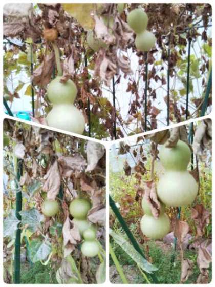 4年生、理科の学習で育てている「ひょうたんの実」ができました。大きいものや小さくてかわいいものまで、たくさんできました。