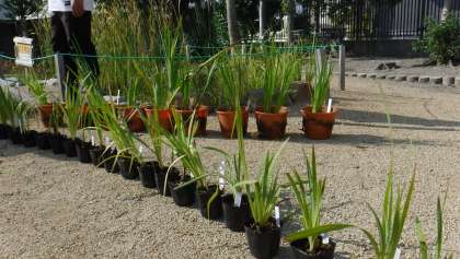 春に花菖蒲の株分けをした株が、ポットの中でたくさんの根を巻いていました。