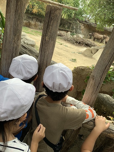 普段では見られないサイ同士の縄張り争いを見て、1年生も驚いていました。