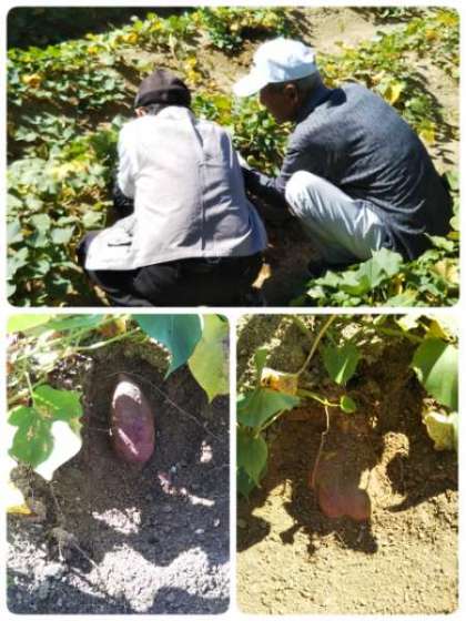 さつまいもが大きくなっているか、地域の方が様子を見に来てくださいました。順調に大きくなっているようです。でも、いもほりには、まだ早いようです。もう少し、太陽の光を浴びて、栄養をたくわえ、大きく育ってくださいね。
