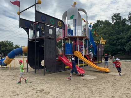 秋の遠足に行きました。とても長いすべり台とターザンロープで盛り上がりました。