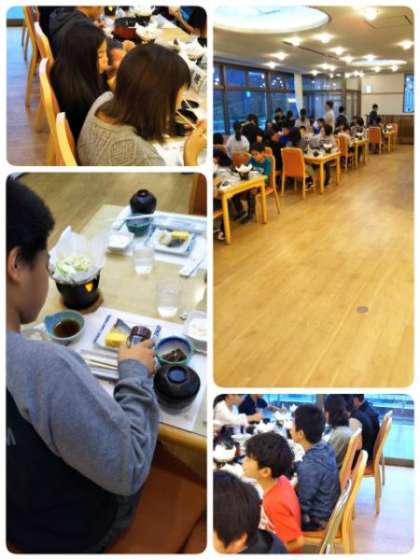 朝食の時間です。眠そうな児童も何人かいましたが、しっかり食べて体力をつけましょう。