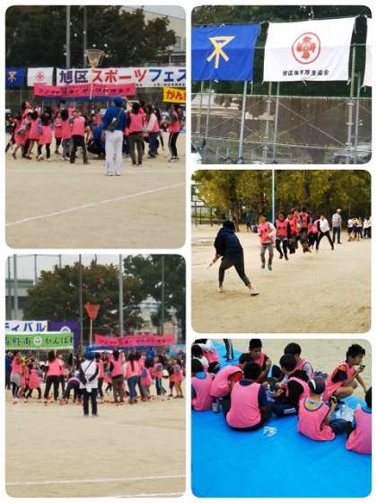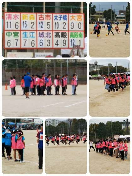 午後は、校下対抗玉入れ、校下対抗障害物リレー、校下対抗ジャンボ縄跳び合戦、校下対抗リレー決勝(小学校・年代別女子・年代別男子)等が行われました。