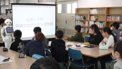 プログラミング教育の一環で、ペッパー君を通じてプログラミングについて学びました。
