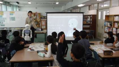 清水小学校にペッパー君がやってきました。