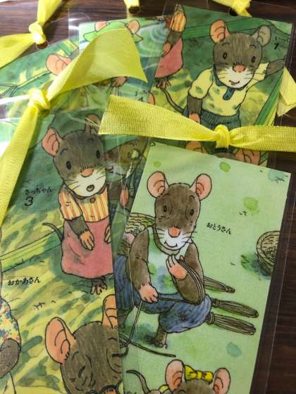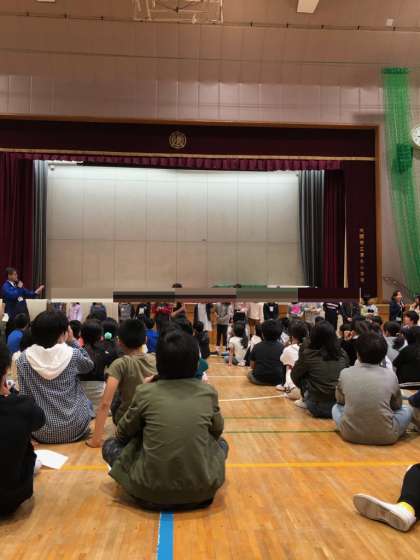 児童集会で、読書カードの目標冊数を達成した児童が表彰されました。紹介された児童には、図書室から記念のしおりをもらいました。