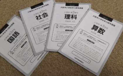 12月4日、5日の2日間、大阪市小学校学力経年調査を実施しています。3年生〜6年生で、国語、算数、社会、理科の4教科の実施です。