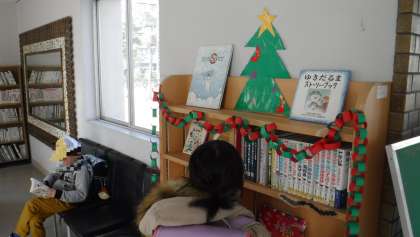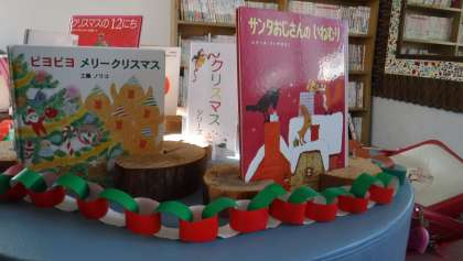 玄関の「ほっとスペース」にクリスマス特集で、クリスマスに関係する本のコーナーができました。