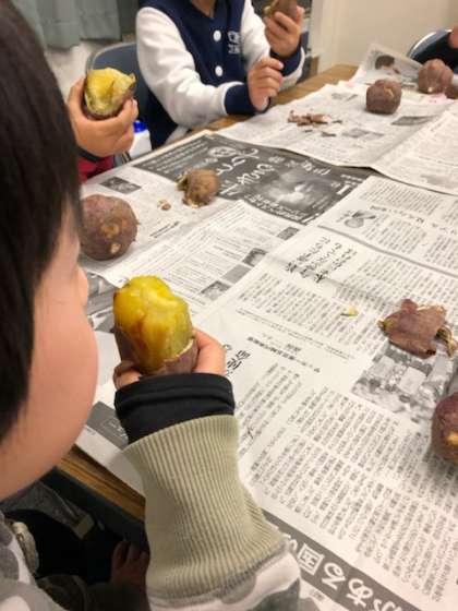 たくさんの子が夢中で焼きたての芋をほおばっていました。