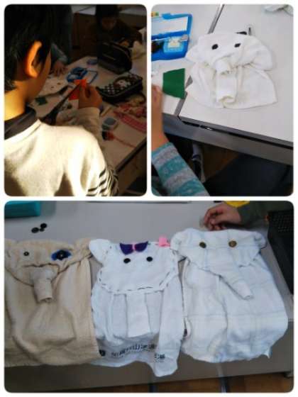 クラブ活動の様子です。家庭科クラブは、布を活用しながら、かわいらしいマスコットを作成していました。(12月16日 記事)