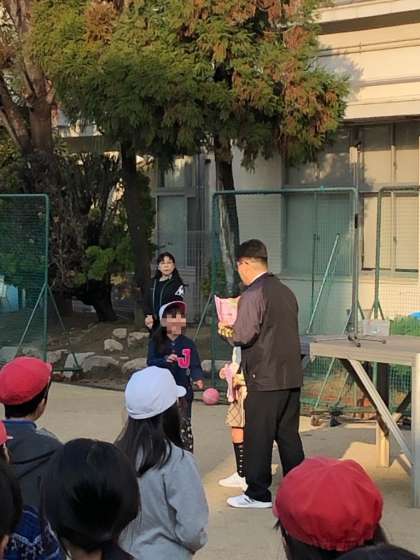 読書カードは2人が表彰を受け、しおりをもらいました。