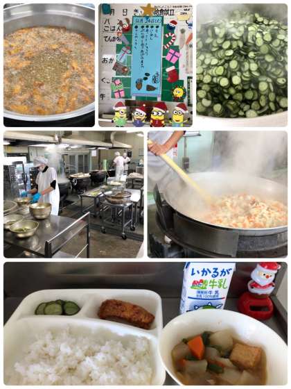 今日の献立は、たらのフライ・豚肉とあつあげの煮もの・あっさりきゅうり・ごはん・牛乳でした。