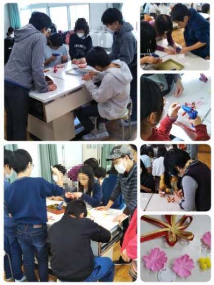地域の生涯学習ルームの方々のご指導のもと、もうすぐ卒業をむかえる6年生のために、5年生が胸花づくりをしました。一つ一つ丁寧に感謝の気持ちを込めて、制作しました。