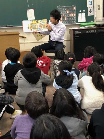(こどもたちは絵本にくぎつけです)