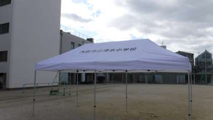 清水校区に拠点をおいておられる株式会社アルダックさんより「地域貢献の一環にぜひご活用ください!」と清水小学校に大型テントと図書の本を寄贈していただきました。