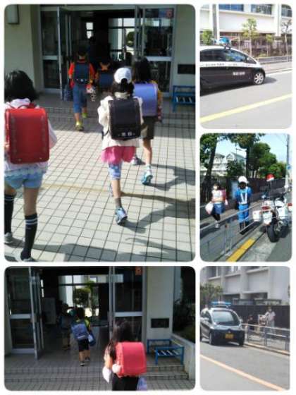 登校時には、旭警察の方や旭区役所の安全パトロールの方が、見守りに来ていただきました。