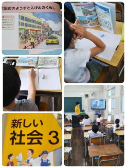 3年生の学習の様子です。「大阪市のようすと人々のくらし」で自分たちの住んでいる清水地域とよく似ている部分について、意見を出し合いました。