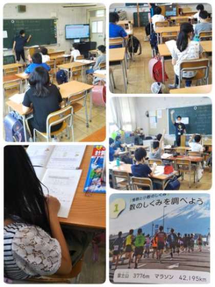 算数の授業です。「数のしくみ」について学習します。「整数と小数のしくみ」で小数点について調べました。