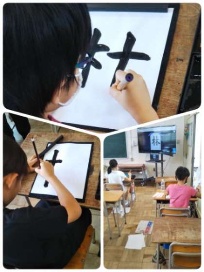 習字をしました。背筋を伸ばし、正しい姿勢で臨みます。ゆっくりと丁寧に、見本をしっかり見ながら書きました。