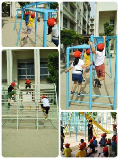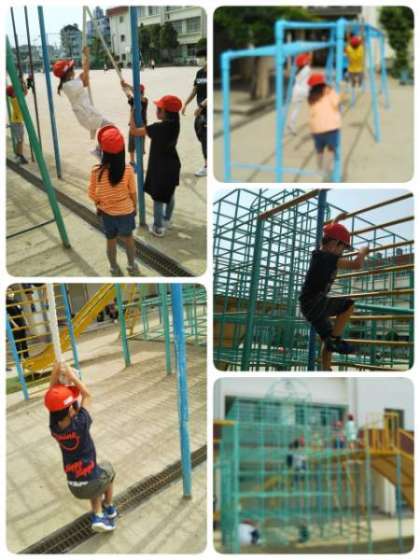 今日は、外遊びをしました。遊具の正しい使い方を学習した後、みんな元気に遊びました。