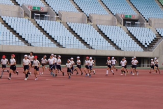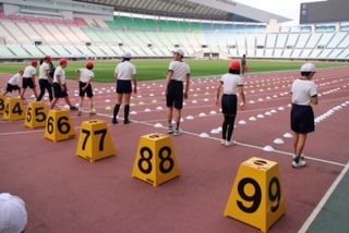 午前中は、長居陸上競技場で100m走・4×100mリレー・800m走をしました。
