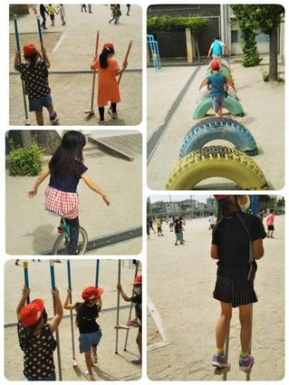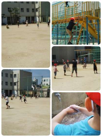 休み時間の様子です。マスクをしながらの休み時間ですが、みんな元気に遊んでいます。熱中症にも気をつけながら、水分補給もして遊びましょう。
