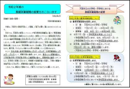 令和2年度 長期休業期間の変更・教育課程の見直しのお知らせ