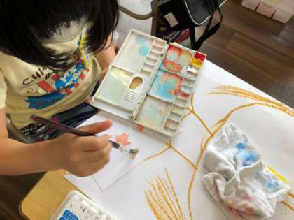 と、少しずつ絵の具を混ぜながら、色を作りだそうとしていました。