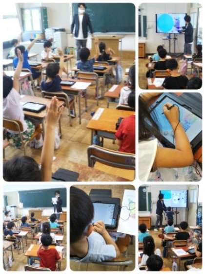 自分で考えた「海の生き物」を「すいぞくかんでゆらゆらうごかそう」とのめあてで学習しました。タブレットにあるプログラミングツールを使用して、さかなやくらげ、たこなど、子どもたちが考えた生き物たちが、ゆらゆら動く様子がたくさん見られました。