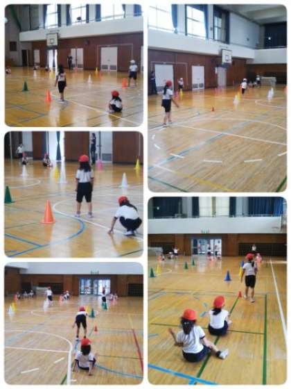 体育の授業です。体育館でさまざまなリレーをしました。みんな元気いっぱい走っていました。