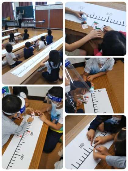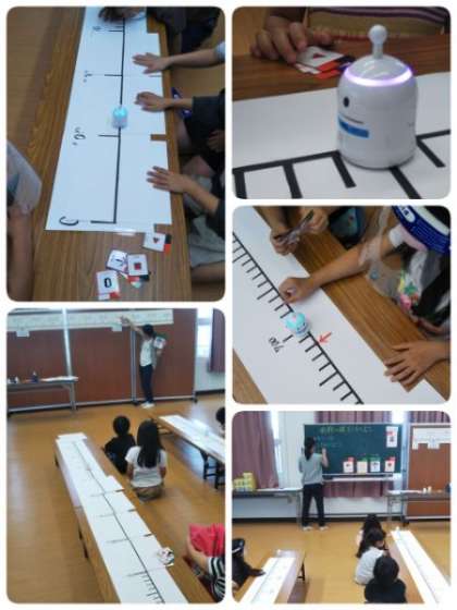2年生の算数の授業の様子です。「数の線をしらべよう」をめあてに学習しました。「10や100を単位としてとらえ、数直線の数の数え方」について、プログラミングロボットを活用し、学びを深めました。