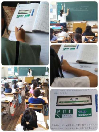 ローマ字の学習をしました。ローマ字は、駅の表示など、私たちの身のまわりのいたるところで使用されています。